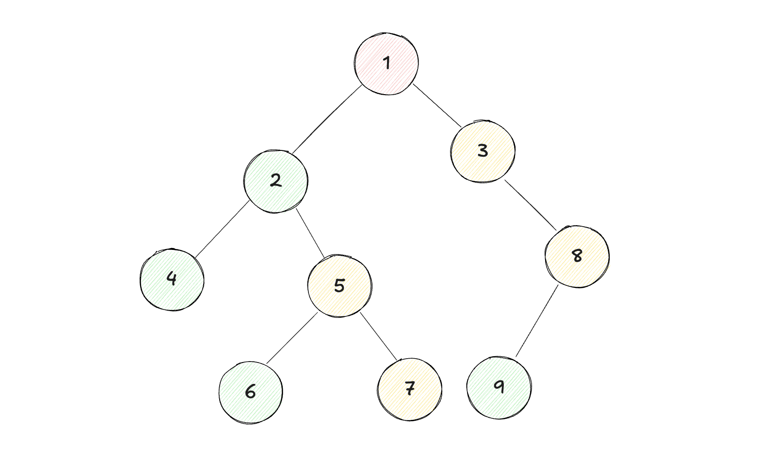 输入:root = [1, 2, 3, 4, 5, null, 8, null, null, 6, 7, 9]