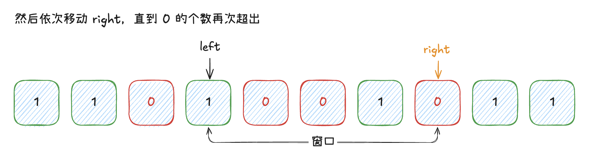 // right 指针的移动过程中,0 的个数超出了限制条件