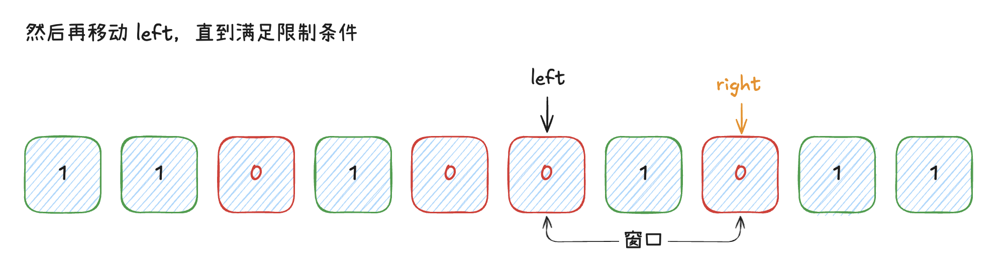 指针,来减少窗口中,0 的个数,直到窗口中 0
